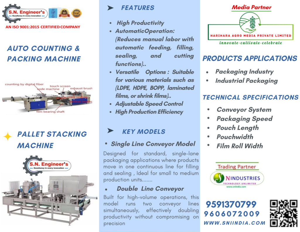 S.N. Engineer’s is a leading manufacturer of high-quality plastic pre- processing machineries and converting machineries , Agro-based machinery. We specialize in Plastic Extruder Machines, Multilayer & Monolayer Film Extrusion Lines, Cutting & Sealing Machines, Agro & Bioplastic Film Extrusion, Drip Pipe Extrusion (Round & Flat), Thermoforming, Vacuum Forming, and Auto-Stacking & Packing Systems. With a strong focus on innovation, durability, and performance, S.N. Engineer’s delivers reliable machinery solutions that help industries achieve higher productivity and consistent output….